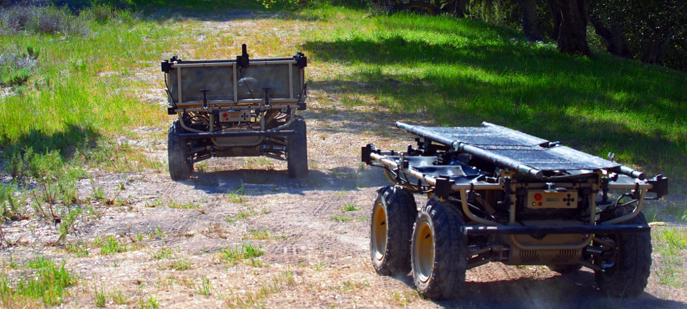 AMBOT enables unmanned vehicles of all sizes to convoy together. With this technology, only one leader needs the intelligence to navigate through the world, while the rest of the fleet simply follows.